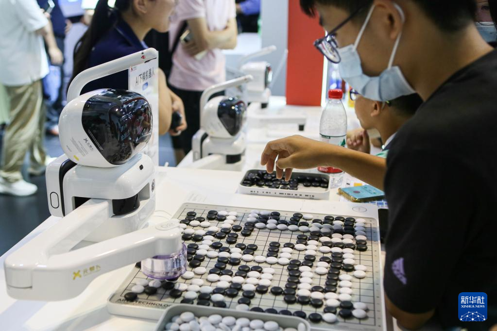 7月7日,元萝卜AI下棋机器人与观众对弈。