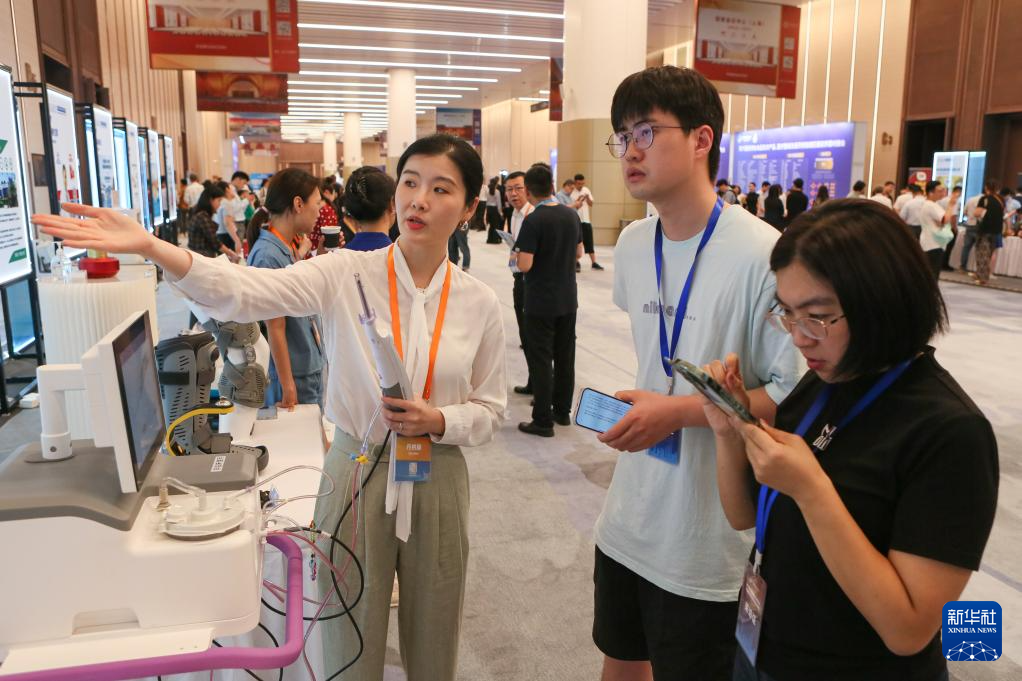 7月26日,参观者在国家会展中心(上海)举行的第六届进博会食品及农产品、医疗器械及医药保健展区展前供需对接会上参观咨询。