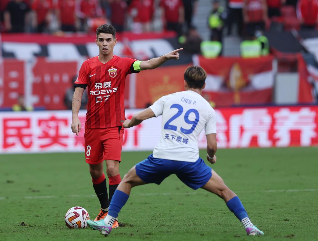 10月29日,上海海港队球员奥斯卡(左)在比赛中。
