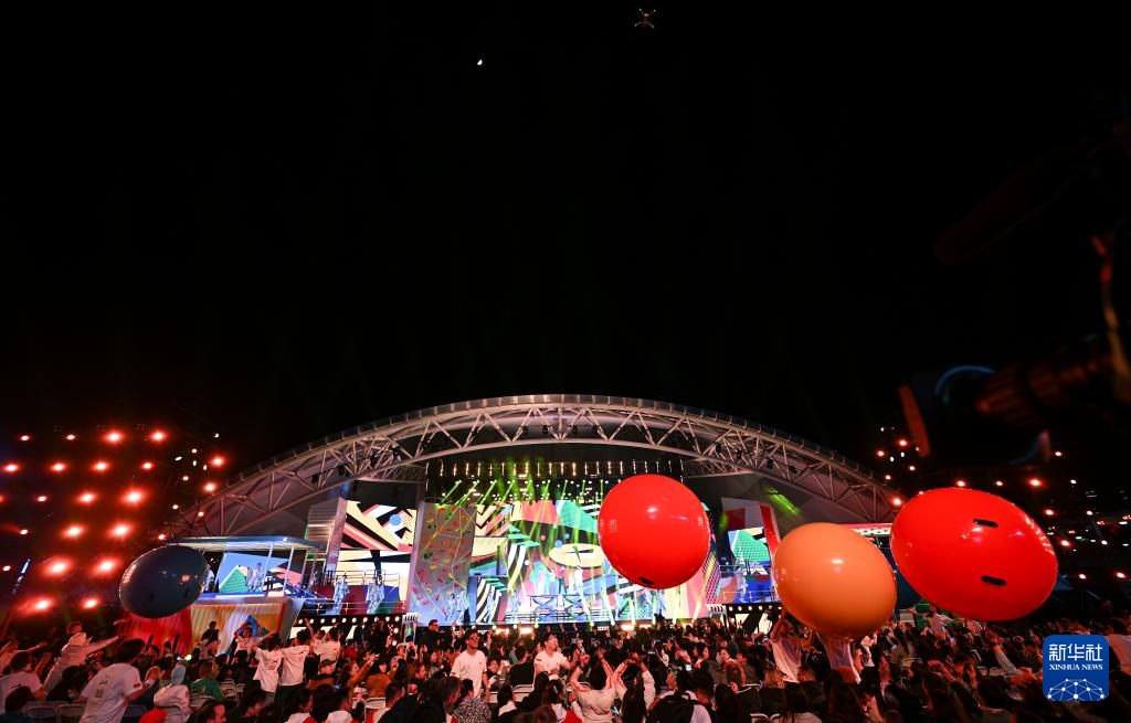 5月15日,观众在欢迎盛典上参加互动游戏。
