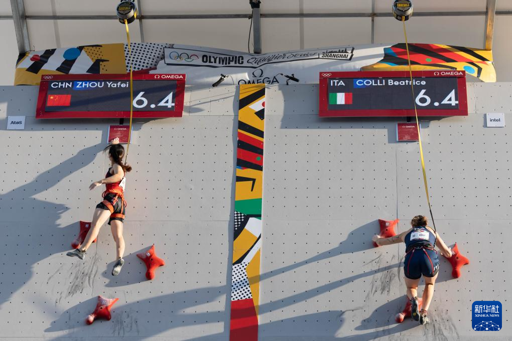 当日,巴黎奥运会资格系列赛上海站女子攀岩速度预赛在上海举行。中国选手牛笛、张少琴、周娅菲、汪生艳全部晋级16强。