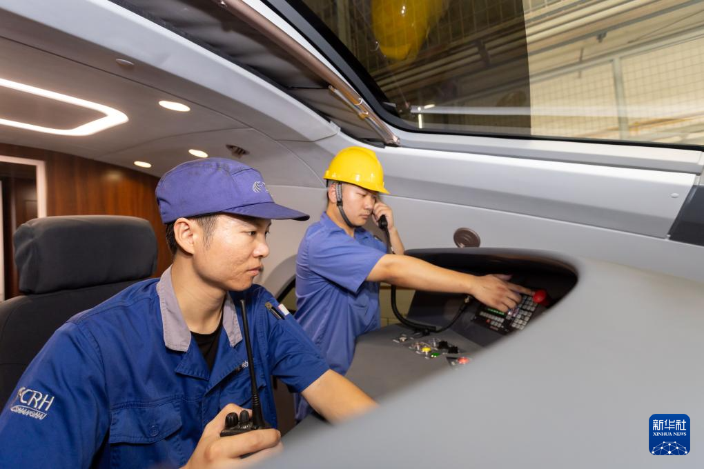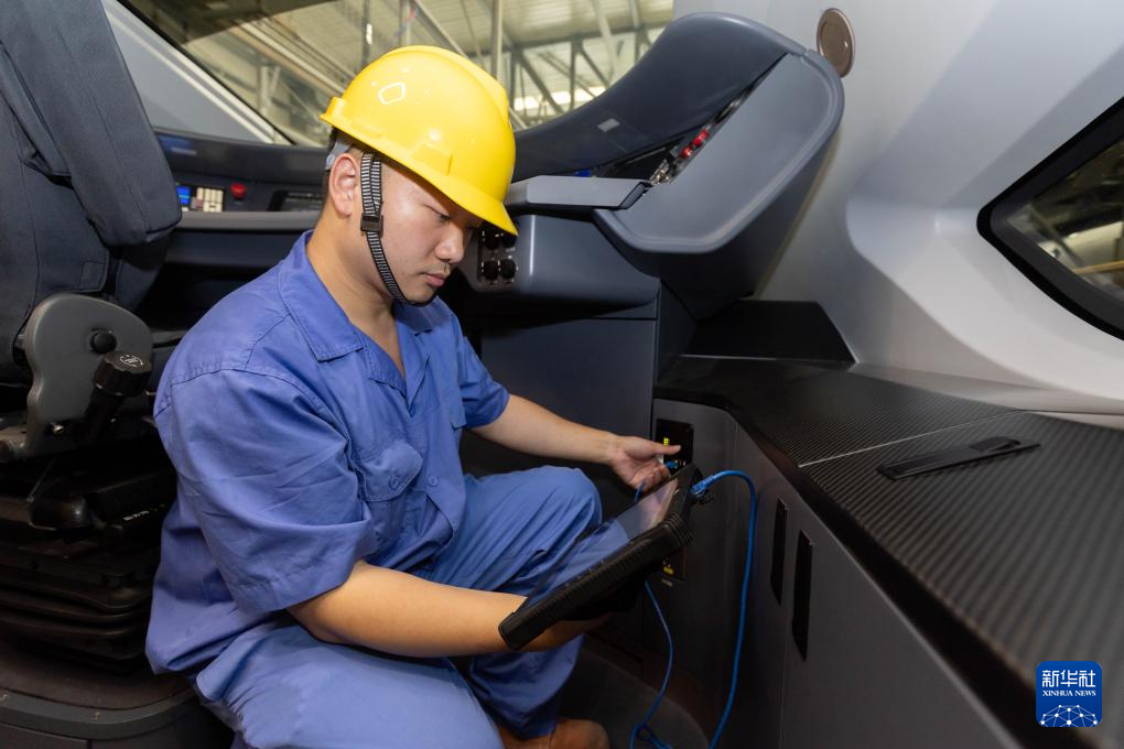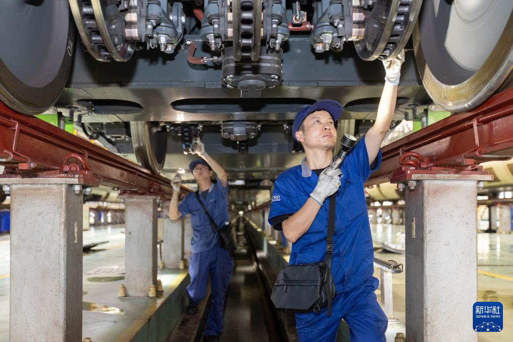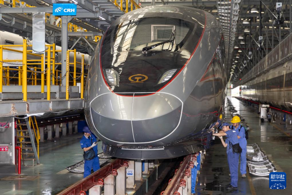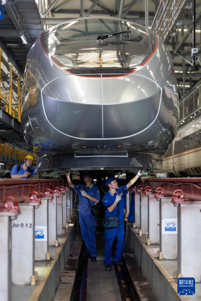国庆黄金周前夕,在上海虹桥动车运用所内,中国铁路上海局集团有限公司上海电务段、上海动车段积极做好动车组检修工作,全力保障动车组安全平稳运行。