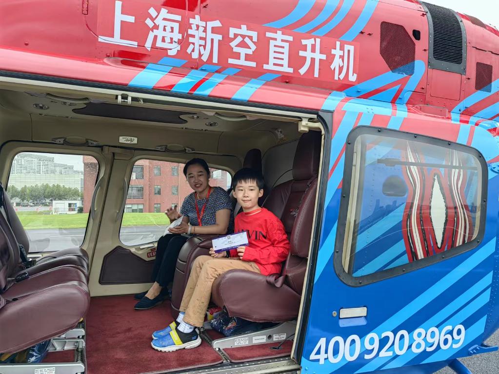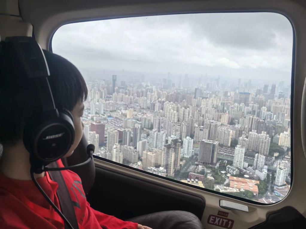 “和平时坐飞机感觉完全不一样,飞机在云层上面,直升机在云层下面,而且玻璃窗比飞机大很多,可以尽情欣赏下面的风景。我看到了世博会展馆、双子山、陆家嘴‘三件套’、外滩……实在太漂亮了!”跟着妈妈从直升机下来后,这名男孩仍然沉浸在兴奋之中。