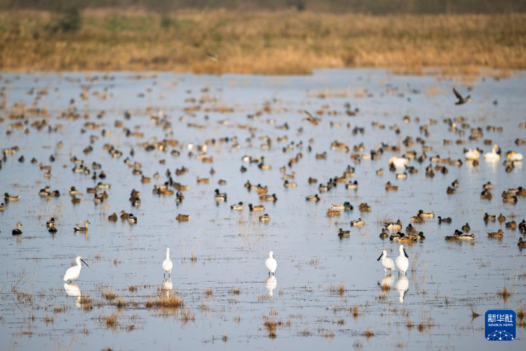 11月12日,候鸟在上海崇明东滩鸟类国家级自然保护区栖息。