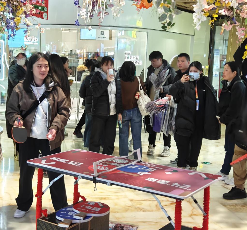 商场内搭起乒乓球桌