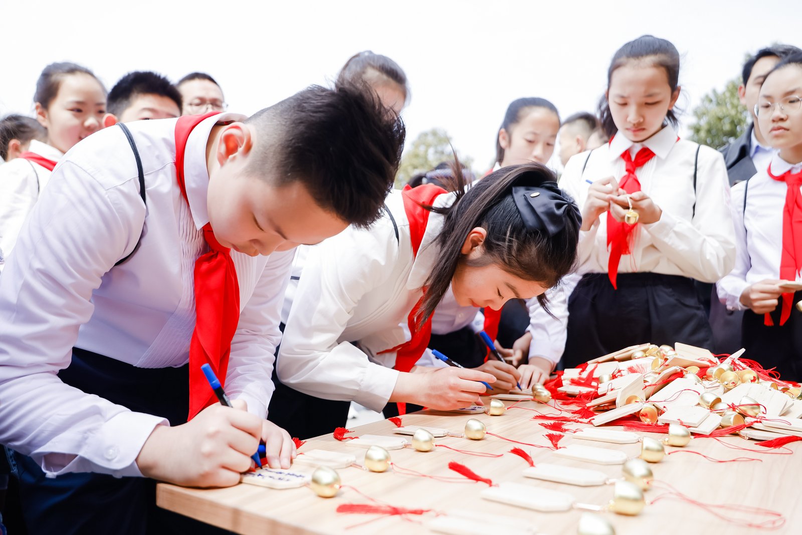 在龙华烈士陵园的非遗展区内,鱼龙灯制作、团扇拓印、竹编画等传统技艺吸引众人驻足。参加活动的青少年纷纷将写满寄语的漂流瓶挂在“思念树”上:“英雄叔叔,谢谢你们让春天常在。”