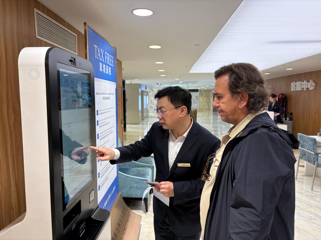 “我刚刚在这里买了中国风格的服装,用自助机办理了退税,全程不过几分钟,实在太方便了!”来自西班牙的游客阿尔瓦罗说。这台离境退税开单自助终端于今年4月28日启用,当天开具出上海第一张自助办理退税申请单。