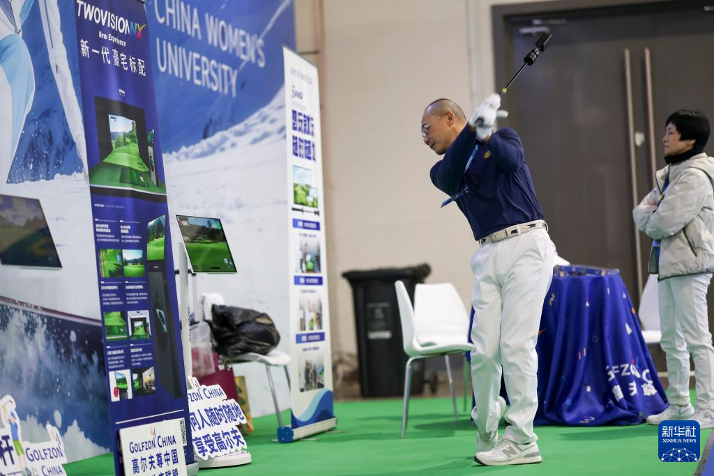 12月26日,工作人员展示便携式高尔夫运动设备。