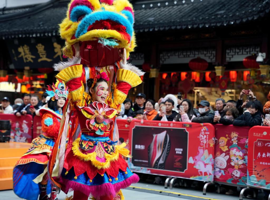 这是3月2日在豫园商城拍摄的民俗文化演出现场。